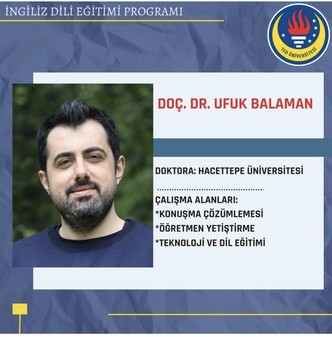 I am an Associate Professor of Applied Linguistics at the Department of English Language Education, TED University, Ankara, Turkiye, the lead researcher of the TEDU CAN (Conversation Analysis Research Group), the coordinator of the recent DigiLTE project, and the author of the recent book “Conversation Analytic Language Teacher Education in Digital Spaces” published by Palgrave/Springer. I previously worked at the Centre de linguistique appliquée, Université de Neuchâtel as a visiting postdoctoral researcher, at Kırıkkale University as an English language instructor, and Hacettepe University as an associate professor.